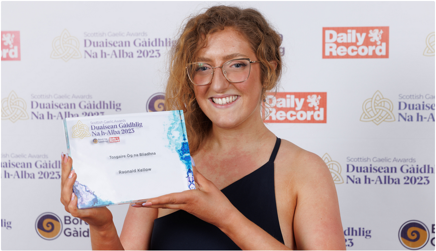 Bha Raonaid Kellow na h-oileanach air Gàidhlig is Conaltradh ann an 2016-17. Tha i a-nis na tidsear, agus mar thoradh air an sàr obair chruthachail, ionmholta a tha i a’ dèanamh na dreuchd, choisinn i an duais, Tosgaire Òg na Gàidhlig am bliadhna. An-dè, chaidh a h-obair aithneachadh anns a’ Phàrlamaid, le gluasad bho BPA Jenni Minto. Leughar an seo e: